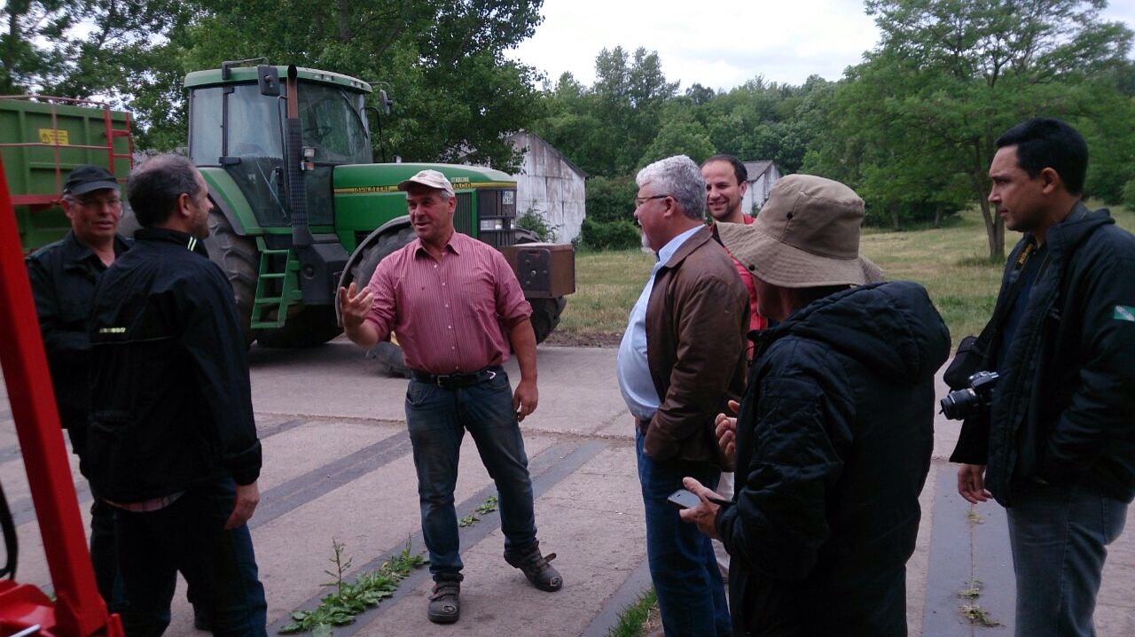 Aufgrund des grossen Erfolgs wurde nun im Mai ein weiterer Austausch durchgeführt. Drei Bio-Bauern und ein Professor aus Brasilien sowie ein Mitarbeiter von gebana Brasil besuchten die Schweiz, Deutschland und Österreich um mit ihren europäischen Kollegen über neue Anbau-Methoden und Vorgehen zu sprechen. Die Teilnehmer hatten ein straffes Wochenprogramm: Da standen nicht nur Besuche bei lokalen Bio-Soja Pionieren und dem EU-Projekte ‚Donau-Soja‘ an, sondern auch Führungen bei Herstellern von Landmaschinen. Die Gäste konnten sich über die neuesten Entwicklungen informieren und sehen, wie die Inputs, die die Hersteller bei Ihrem Besuch letztes Jahr in Brasilien gewonnen hatten, teilweise schon in die Neu-Entwicklung eingeflossen waren. Einige Maschinen konnten direkt auf dem Feld ausprobiert werden und man fachsimpelte über die Unterschiede und Ähnlichkeiten der jeweiligen Anbaugebiete.